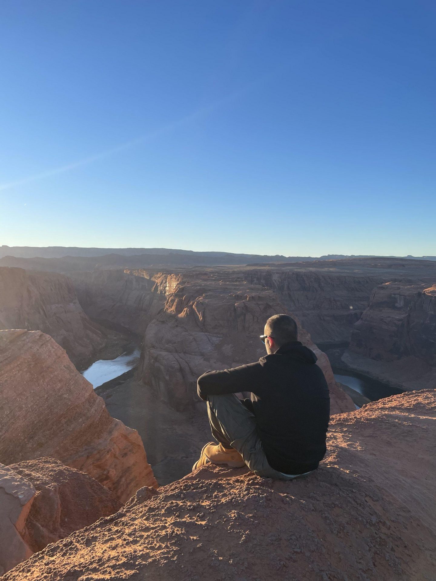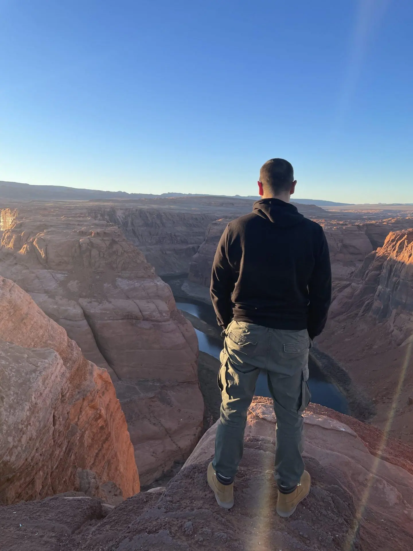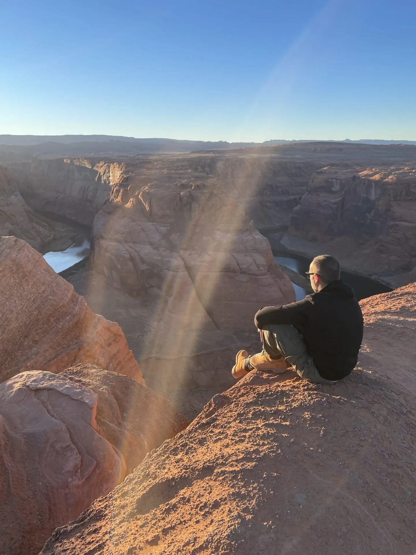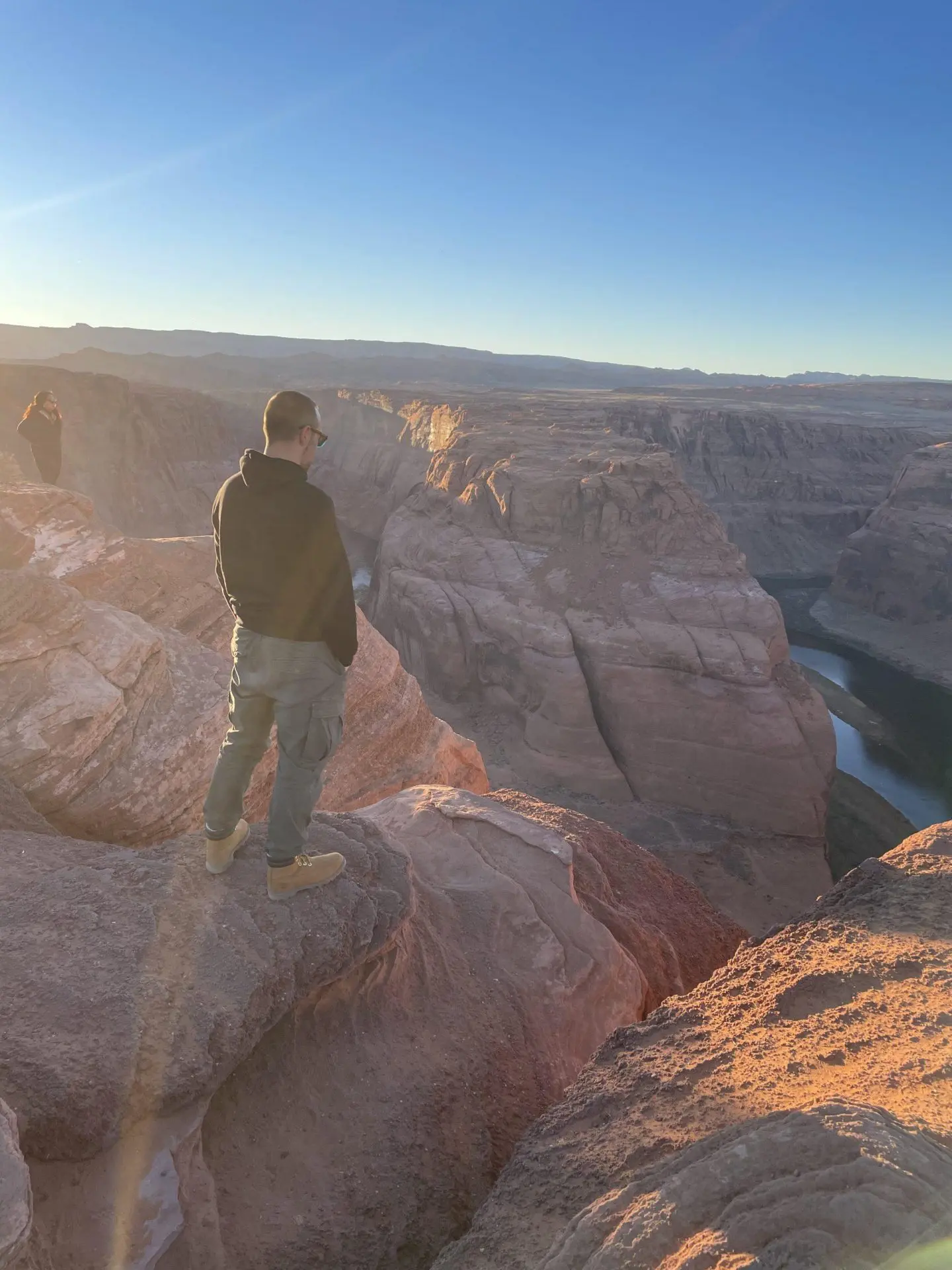 Si quieres algún sitio mas despejado, tendrás que ir a los lados del mirador. Podrás sacar increíbles fotos del rio Colorado, que discurre muchos metros por debajo tuya. Mira bien donde pisas, porque barandilla sólo hay en el mirador, y si no tienes cuidado puedes acabar bañándote en las aguas del Colorado…