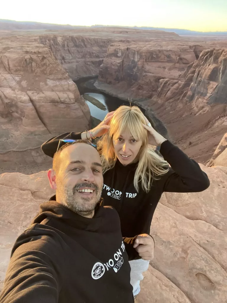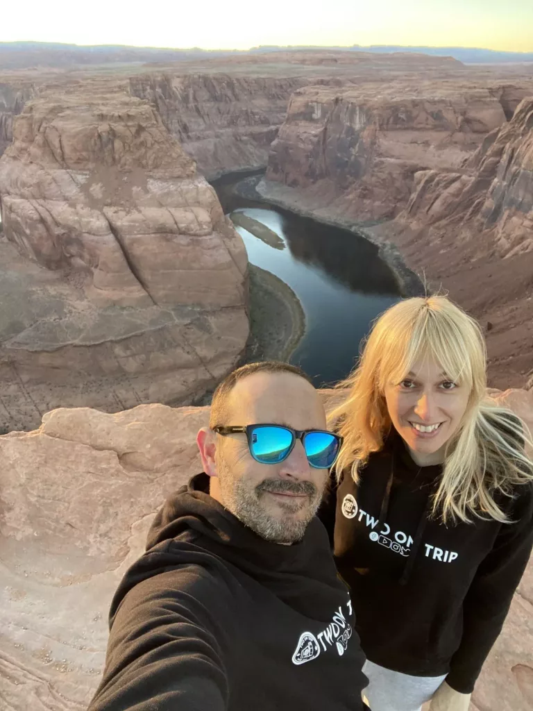 Horseshoe Bend no es Parque Nacional, por lo que el Annual Pass no es válido, algo que resulta muy habitual en esta parte del país. Está abierto entre la salida y la puesta de sol, y si vas por la tarde a última hora, como hicimos nosotros, al llegar te dirán a que hora es el atardecer.